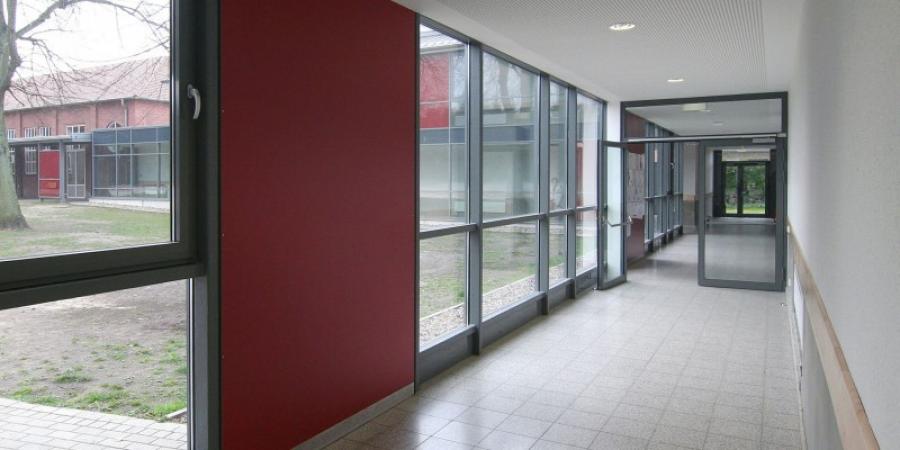 Erweiterung mit 10 Klassenräumen, Kantine, Flure, Pausenhalle mit Glasfassade 2-geschossig Mauerwerkbau EG zweischalig OG einschalig mit Wärmedämmverbundsystem Dacheindeckung mit Kalzip