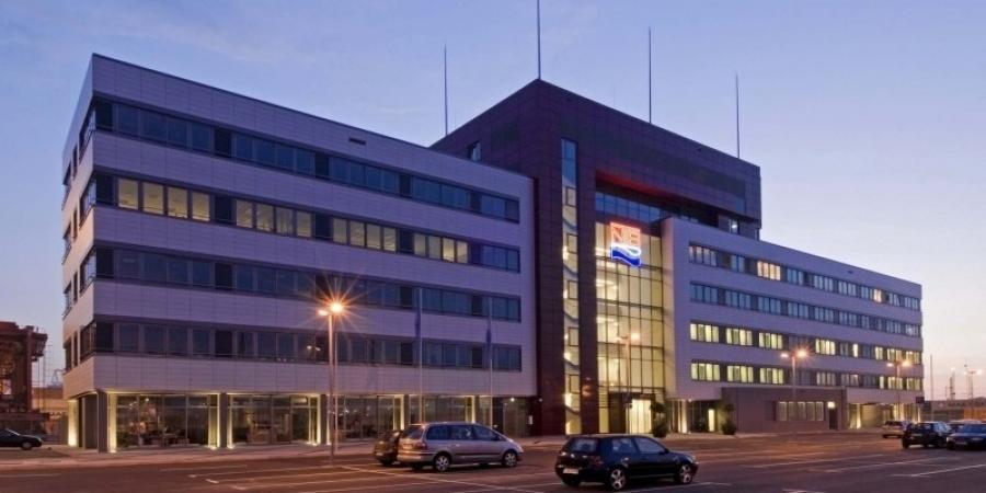 Gebäudekomplex mit 6.200 m² Büroräumen für Verwaltung und Organisation der Containerlogistik. Großzügige Betriebskantine inkl. Küche sowie Sozialräume und Umkleiden in zwei Ebenen für ca. 500 Angestellte. Hochwertige Besprechungsräume im 5. OG mit Blick über das Container Terminal 4. - Truckerabfertigung - zwei hochwertige Serverräume - Foyer über 4 Ebenen - Panoramaaufzüge Stahlbetonskelettbau mit Spannbetonhohlkörperdecken (max. Spannweite !!). Aufstockbar auf komplett 7 Geschosse, Pfahlgründung mit Stb.-Tragrost auf ca. 160 Pfählen, l = 14 m, Glas-, Keramik- und Metallfassaden). Technikzentrale im 6. OG, Fernwärmeanschluss (Holzschnitzelwerk), Lüftung nur in Besprechungs- und Sozialräumen, Kühlung nur Besprechung und "Maersk" (linke Gebäudeseite), mechanische Entrauchung im Treppenhaus und Kantine. Das 100 m lange und rund 14 m breite Gebäude besteht aus zwei Flügeln, die in der Mitte durch ein großes, repräsentatives Treppenhaus, ähnlich einem Torbogen, verbunden werden. Diese "Torwirkung" symbolisiert zugleich den Charakter Bremerhavens als Tor zu Europa, ins Baltikum, nach Skandinavien und Übersee.