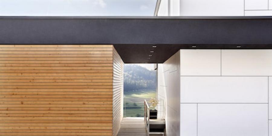 Das zertifizierte Passivhaus steht in der zentralen Schwarzwaldregion in Deutschland. Die Nordseite des Gebäudes ist relativ geschlossen, während sich die Südseite durch eine vollverglaste Front zur Hangseite des Grundstücks öffnet. So orientieren sich auch alle Räume im Innern des Gebäudes zum Tal. Diese Orientierung ermöglicht eine größtmögliche Privatsphäre gegenüber der umgebenden Bebauung Neben der unverbauten Sicht auf das Tal und seiner ruhigen Lage wird die natürliche Ästhetik des Gebäudes sowohl durch die leicht verspielte Außengestaltung und die technische Funktionalität im Innern gestärkt. Zusätzlich zur Lüftungsanlage mit Wärmerückgewinnung unterstützen Sonnenkollektoren auf dem Dach die Warmwasseraufbereitung und -speicherung. Ganz im Sinne des Passivhausstandards, erfolgt die Beheizung des Gebäudes über Luftwärme mit Sohlewärmetauscher. Für zusätzlichen Komfort sorgen integrierten Fußbodenheizungen.