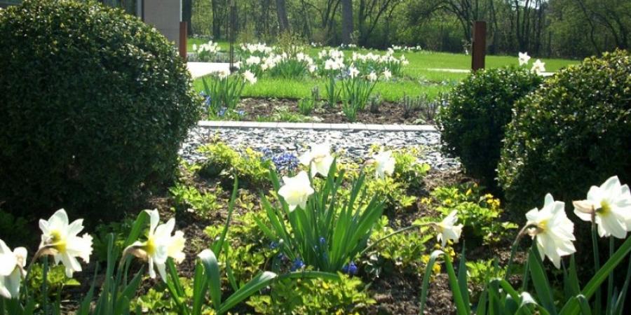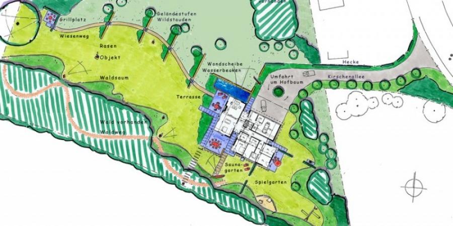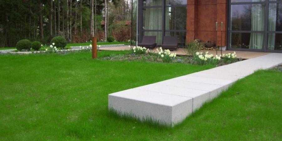 Im Zuge des Neubaus eines Wohnhauses in Paderborn entstand ein Garten, der sich eng mit dem Gebäude verzahnt. Besonders die Achsenbildung, die sich aus dem Grundriss ergibt, wurde konsequent im Freiraum weiterentwickelt. Dabei entstanden unterschiedliche Funktionsbereiche. Carmen Ciesla entwarf für die Endpunkte der Achsen Skulpturen aus Metall, die den Blick aus dem Haus in den Garten leiten. Die Terrassen und Wege wurden aus WPC und großformatigen Platten ausgeführt.