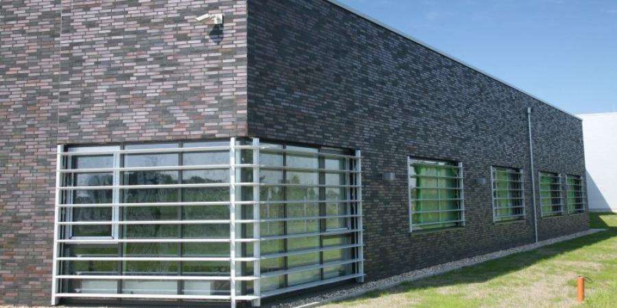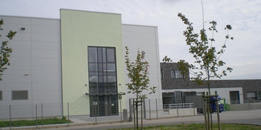 Die Regalanlage im Zentrallager ist für 1.500 Palettenplätze ausgelegt, die Paletten lagern in 4 Etagen. 3.970 Fachbodenregalplätze für kleine Artikel wurden in 6 Ebenen eingebaut. Die Lagerhalle ist zur Giebelseite erweiterbar, entsprechende Vorkehrungen sind bereits statisch und konstruktiv vorbereitet Die Lagerhalle mit der Abmessung 50 x 50 m hat nur eine in der Mitte befindliche Innenstütze. Die Außenwände aus 140 mm stark gedämmten Sandwichpaneelen, die horizontal montiert wurden und das mit 160 mm Mineralwolle gedämmte Dach sorgen für eine gleichbleibende Innentemperatur im Winter und im Sommer. Die Rauch- und Wärmeabzugsanlagen können zur täglichen Belüftung geöffnet werden, angesteuert werden sie über eine Sommer-Nacht-Auskühl-Steuerung. Für den notwendigen Luftwechsel sind in der Fassade elektrisch ansteuerbare Zuluftöffnungen erforderlich. Während der gesamten Sommerperiode in 2009 wurde an keinem Tag in der Halle mehr als 24 Grad gemessen, und das ohne Kühlung. Stahlfasersohle in 4 Feldabschnitten à 600 m², Stb.-Fertigteile, Brandwand zum Warenversand. In die Logistikhalle wurden notwendige Hausanschlussräume, Sozialräume, das WE-/WA-Büro im EG und im OG die modern ausgestatteten und lichtdurchfluteten Büros integriert. Ebenfalls im OG steht für den Klinikverbund ein 100 m² großer und mit einer mobilen Trennwand teilbarer Seminarraum mit Dachterrasse zur Verfügung. Warenversand mit 3 Loadhouses, Lager für brennbare Flüssigkeiten und Infusionen sind der Kommissionierung angegliedert. Der sehr dunkle Torfbrandklinker stellt mit seinen unterschiedlichen Farbnuancen einen gelungenen Kontrast zur metallicfarbenen Fassade der Lagerhalle dar. Zwei große Wandscheiben, farbig abgesetzt, kennzeichnen schon von Weitem die beiden Haupteingänge.