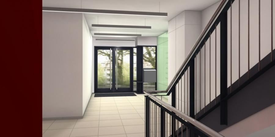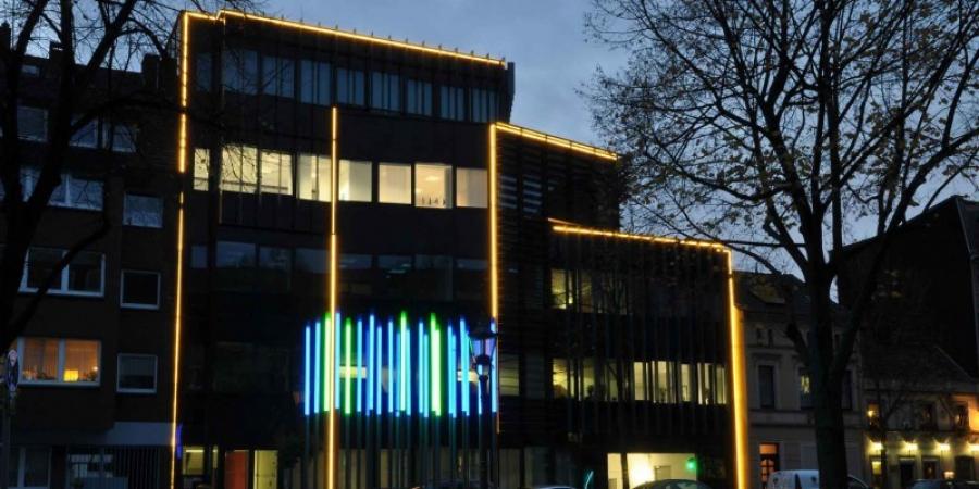 Das Projekt ist das Ergebnis eines für unser Büro entschiedenen Realisierungswettbewerbes mit dem Schwerpunkt - Einbindung in die Straßenzeile "Am Neumarkt" mit zeitgemäßen Gestaltungselementen. Nutzung als Büro-/Verwaltungsgebäude mit Raumprogramm, das als "Kombi"- und Zeilenbüro variiert. Die Abstufung über die Geschosse ist den Höhenlinien des Straßenzuges angepasst. Durch die Situation der Lückenbebauung musste die Belichtung der Räume mit großen Glasflächen von den freien Außenwandflächen erfüllt werden. Die unter dem Gebäude geplante Tiefgarage ist als druckwasserdichte Stahlbetonkonstruktion erstellt, insbesondere wegen dem Hochwasserpegel des Rhein. Die Gründungsebene liegt unter den Fundamenten der Nachbargebäude und erforderte Spezialgründungsmaßnahmen (Bohrpfahlwandsystem). Der hintere Gebäuderiegel zum Campus ist um 2 Vollgeschosse aufstockbar konzipiert.
