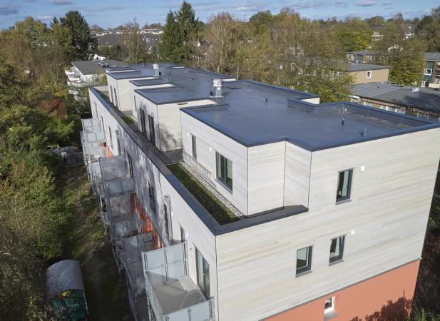 2-geschossige Aufstockung in Holzmassiv- und Holzrahmenbauweise. 8 WE davon 5 als Maisonette