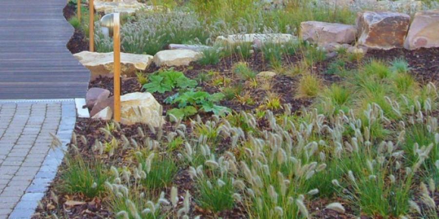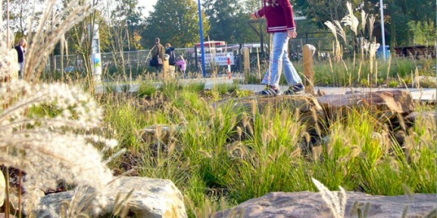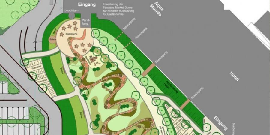 Der Vorplatz am Market Dome, ein repräsentativer Freiraum an der Strandpromenade Tossens, orientiert sich am Thema „Gräsermeer“ und greift somit die unmittelbare Nähe zur Nordsee auf. Grüne Wogen aus Pennisetum, Calamagrostis und Miscanthus werden durch ein geschwungenes Band aus hellem Sandstein durchzogen und gefasst. Die auf dem Platz integrierte Aufenthalts- und Spielbereiche bieten Raum für die hohe Nutzungsfrequenz an der Strandpromenade.