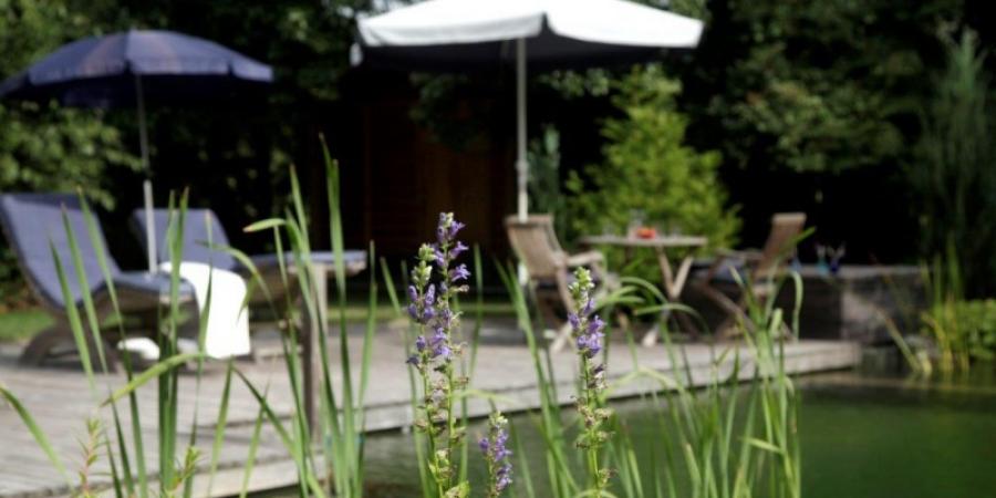 Schwimmen in natürlichem Wasser Naturteich ohne Chemie