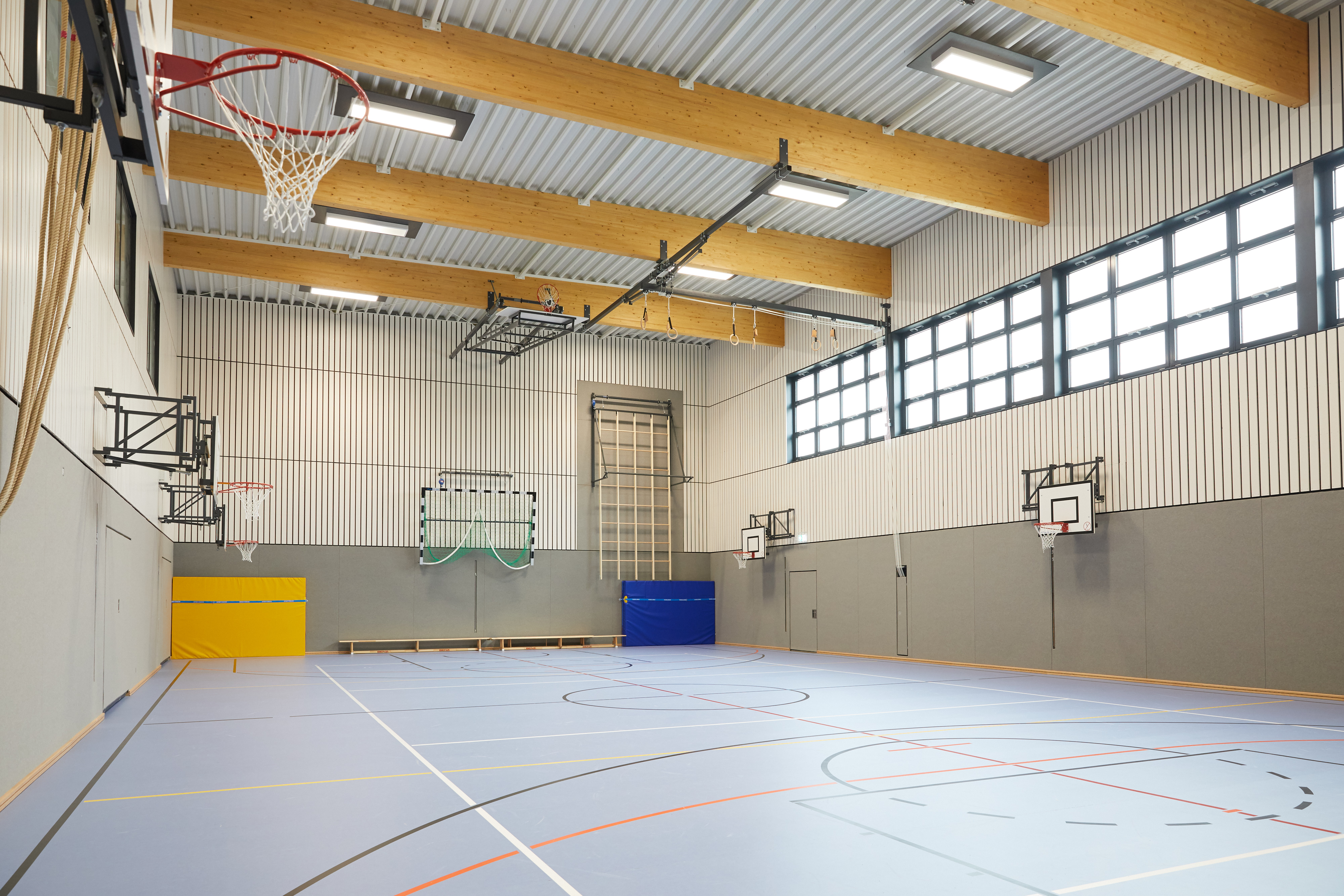 umgesetzt. So werden Bereiche wie der Snoezelraum, Sporthalle, Aula und der Außenraum